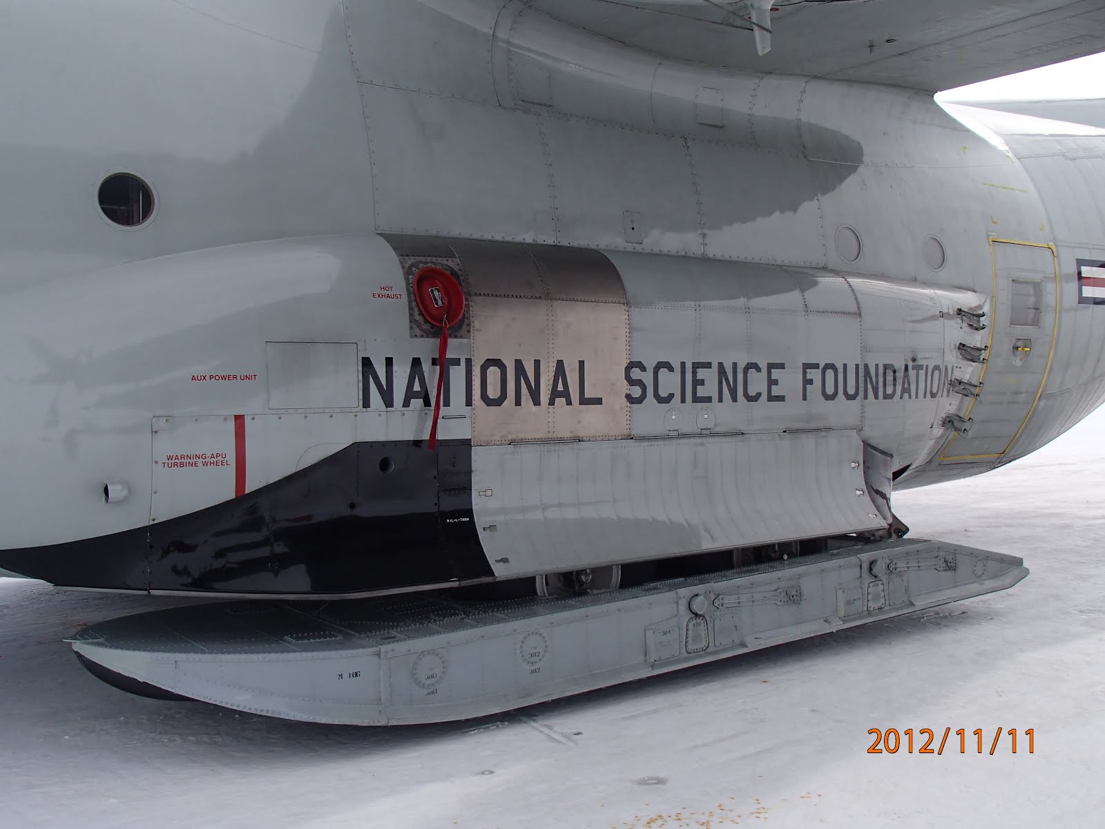| The C-130's are equipped with skis so they can land on the snow and ice at the field camps. |